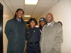 Officer Cariol Holloman Horne, outside hearing room, Buffalo Police Headquarters with Ken Nixon & A. Pendergrass
